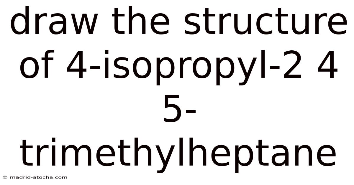 The hydrocarbon 4‑isopropyl‑2,4,5‑trimethylheptane is a branched alkane that often appears in discussions of fuel additives, synthetic organic chemistry, and structural isomerism. Understanding how to draw its structure correctly is essential for students mastering IUPAC nomenclature, for chemists planning synthetic routes, and for anyone needing to visualize complex aliphatic molecules. Even so, this article walks you through every step of constructing the skeleton, interpreting the name, identifying the correct carbon backbone, placing substituents, and checking stereochemical possibilities. By the end, you will be able to sketch the molecule confidently, explain why the drawing is unique, and apply the same logic to other branched alkanes The details matter here..