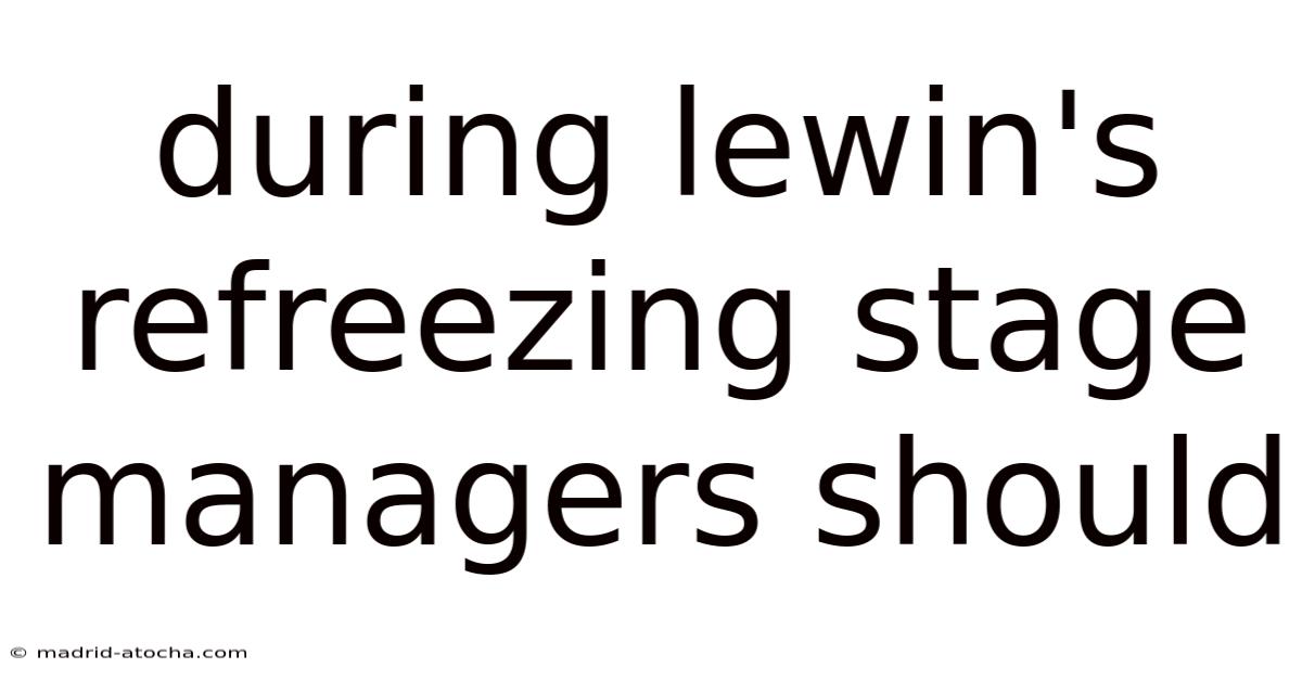 During Lewin's Refreezing Stage, Managers Should Focus on Stabilizing Change and Embedding New Practices
