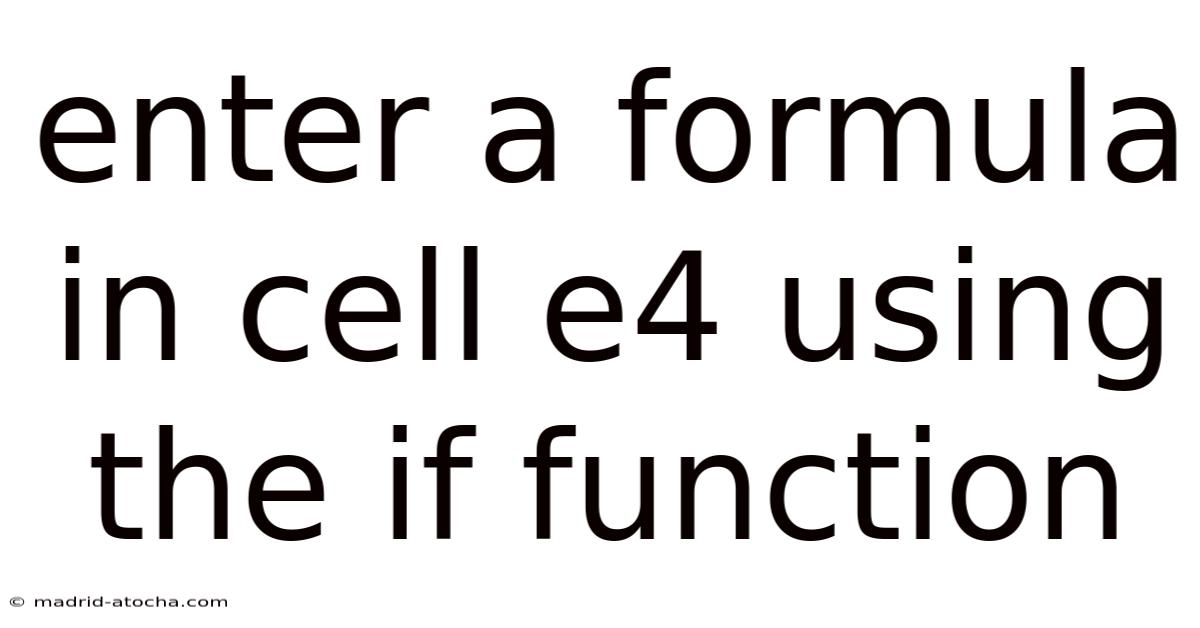 When you enter a formula in cell e4 using the if function, you are instructing the spreadsheet to evaluate a condition and return one result if the condition is true and another result if it is false. The IF function follows a simple syntax: IF(logical_test, value_if_true, value_if_false). Mastering this syntax in cell E4 opens the door to more complex nested formulas, conditional formatting, and data-driven decision‑making. The following sections break down each component, provide step‑by‑step instructions, and address frequently asked questions to ensure a smooth learning curve Not complicated — just consistent..