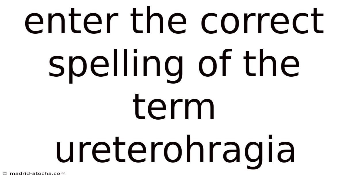 Mastering the correct spelling and understanding of the term ureterorrhagia provides a window into the complex anatomy of the human urinary system. By breaking the word down into its roots—uretero (ureter) and rrhagia (excessive flow of blood)—we can move beyond simple memorization to a true understanding of the clinical condition It's one of those things that adds up..