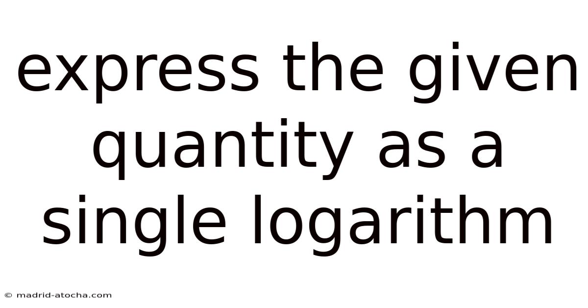 Understanding how to express the given quantity as a single logarithm is a fundamental skill in algebra and precalculus that unlocks the door to simplifying complex expressions and solving layered equations. This ability is not just an academic exercise; it is a critical tool for analyzing exponential growth, decibel scales in acoustics, pH levels in chemistry, and algorithms in computer science. In real terms, this process, often called "condensing logarithms," relies on the powerful inverse relationship between logarithms and exponents. By mastering the core properties of logarithms, you can transform a scattered collection of logarithmic terms into one clean, concise logarithmic statement. This guide will walk you through the essential rules, provide step-by-step strategies, and highlight common pitfalls to ensure you can confidently tackle any condensation problem Easy to understand, harder to ignore. Which is the point..