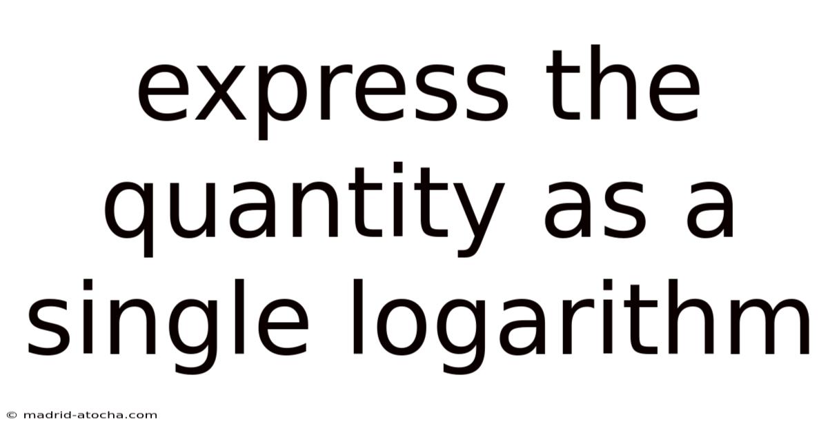 At its core, expressing the quantity as a single logarithm involves using logarithmic rules to combine multiple log terms into one. This process is not just a mathematical exercise; it simplifies complex equations, making them easier to solve or interpret. To give you an idea, in scientific research or financial modeling, equations often involve sums or differences of logarithms. Reducing these to a single term can reveal insights that might otherwise remain hidden Surprisingly effective..