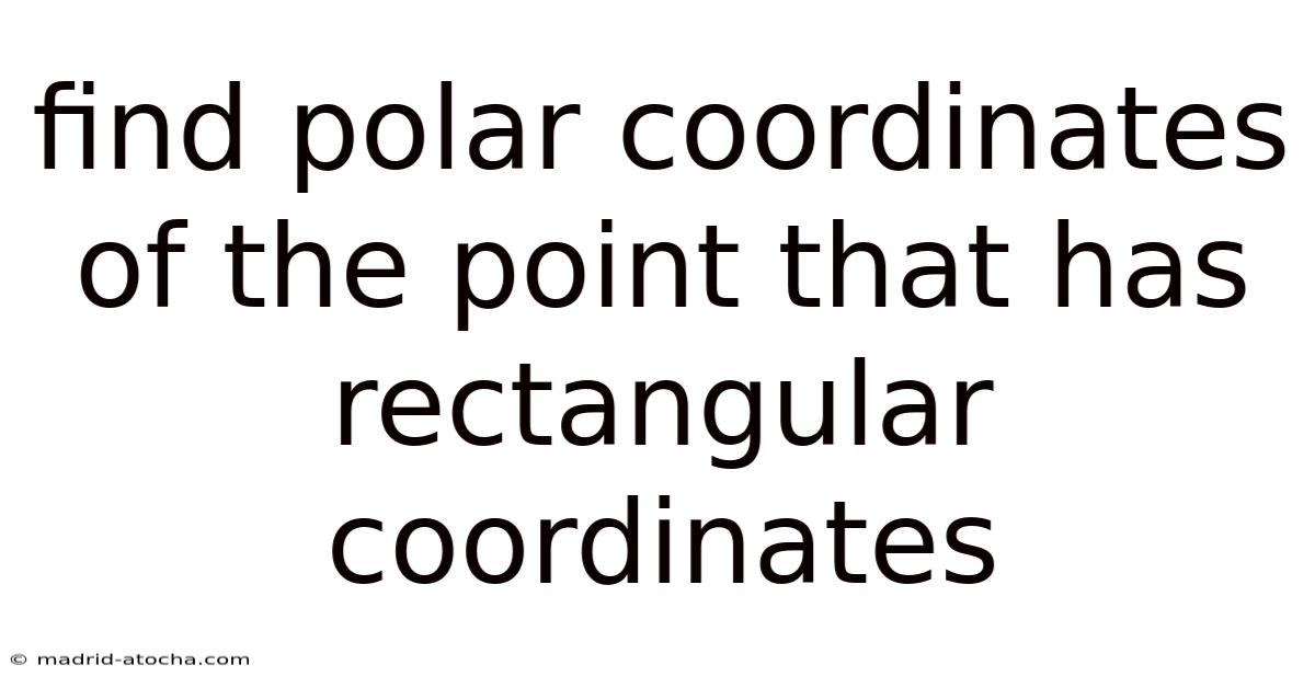 When working with coordinates, there are often two ways to describe a point in a plane: Cartesian coordinates and polar coordinates. On top of that, the Cartesian system uses horizontal and vertical axes, while the polar system relies on distance from the origin and angle from a reference direction. The challenge lies in converting between these two systems, especially when you start with a point that is already in rectangular form That alone is useful..