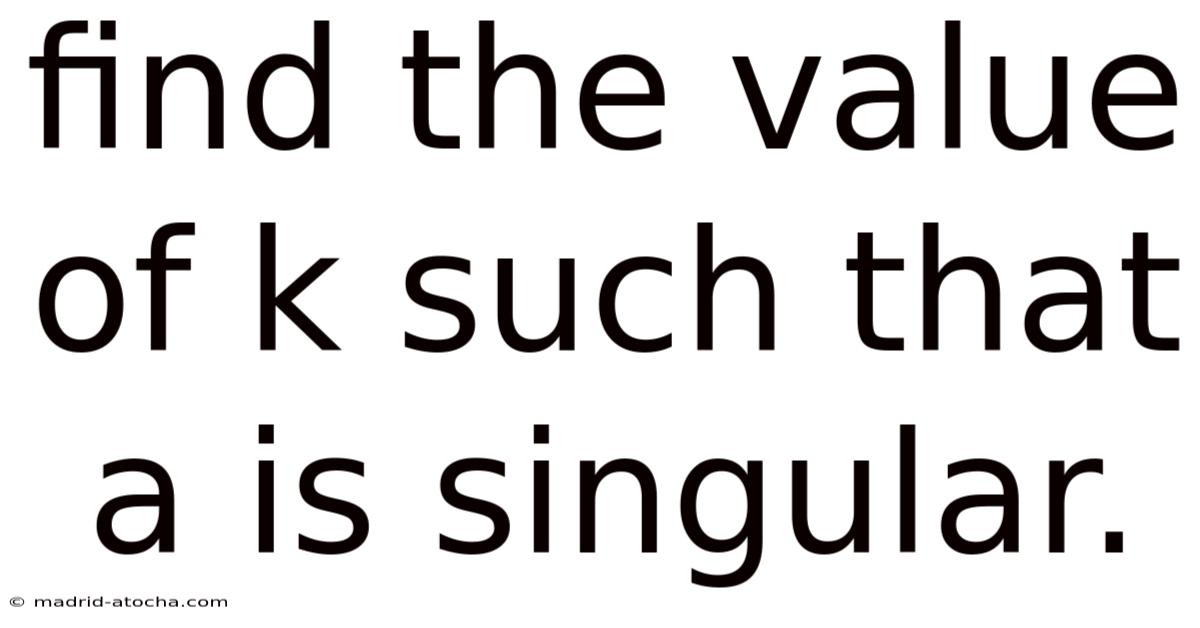 Because singularity is tied directly to the determinant, the core question “find the value of k such that A is singular” translates to solve det(A) = 0 for k. The rest of the article expands this simple statement into a dependable, repeatable process Small thing, real impact. Simple as that..