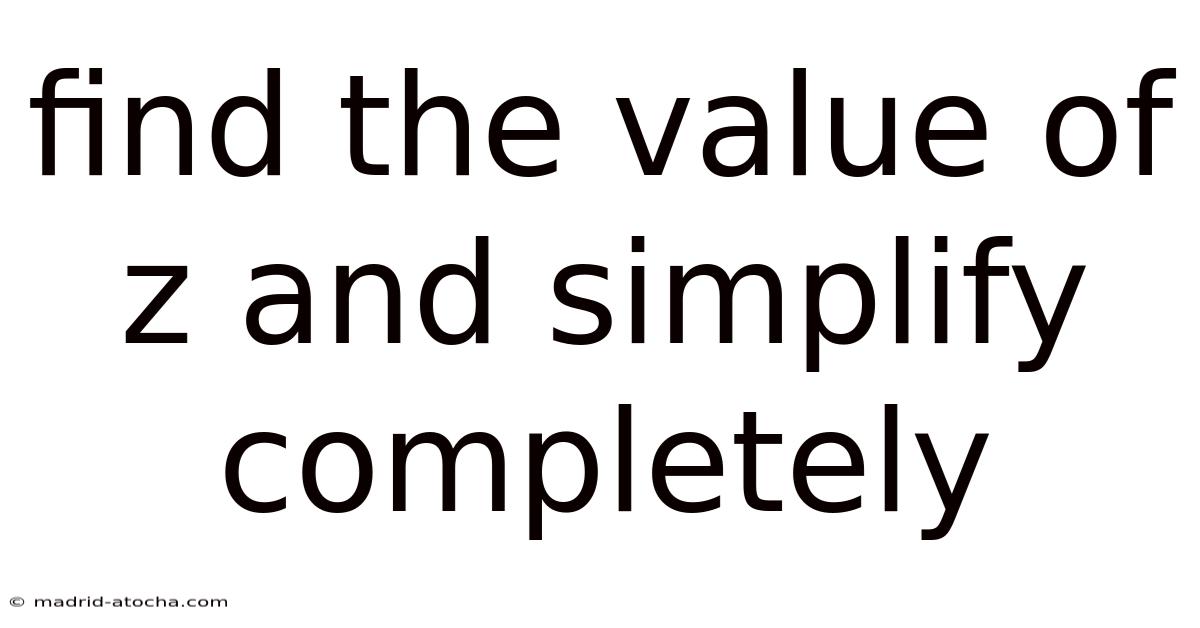 The instruction to find the value of z and simplify completely is grounded in the mathematical concept of canonical form. A canonical form is a standardized representation that allows mathematicians, scientists, and engineers to compare results, verify calculations, and build upon previous work without ambiguity. When you simplify an expression, you are essentially translating a raw computational output into a universally recognized format That's the part that actually makes a difference..