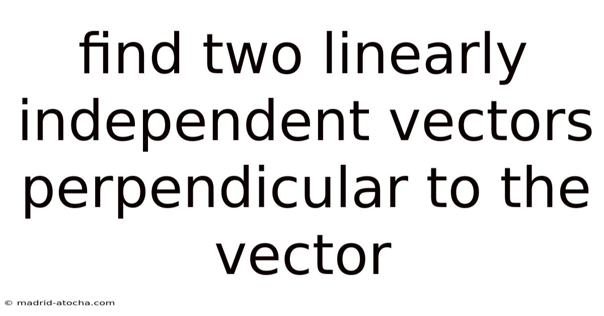 Understanding the concept of finding two linearly independent vectors perpendicular to a given vector is a fundamental topic in mathematics, particularly in linear algebra and geometry. This process not only strengthens your grasp of vector spaces but also equips you with practical tools for solving real-world problems. Which means whether you're working on physics, engineering, or even computer graphics, mastering this skill is essential. Let’s dive into the details and explore how to approach this challenge effectively The details matter here..