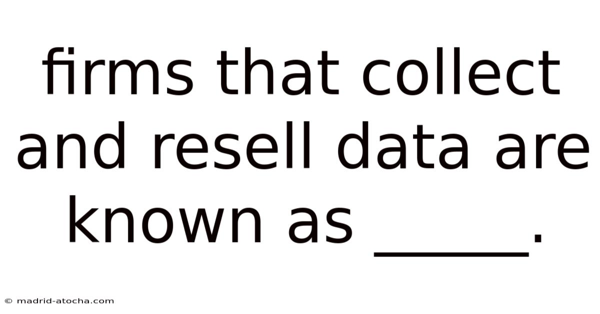 Firms That Collect and Resell Data Are Known As Data Brokers