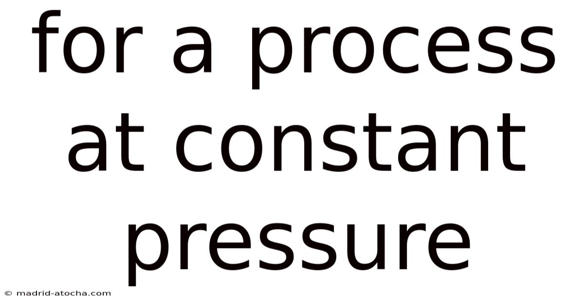 Understanding Processes at Constant Pressure: A Fundamental Concept in Thermodynamics