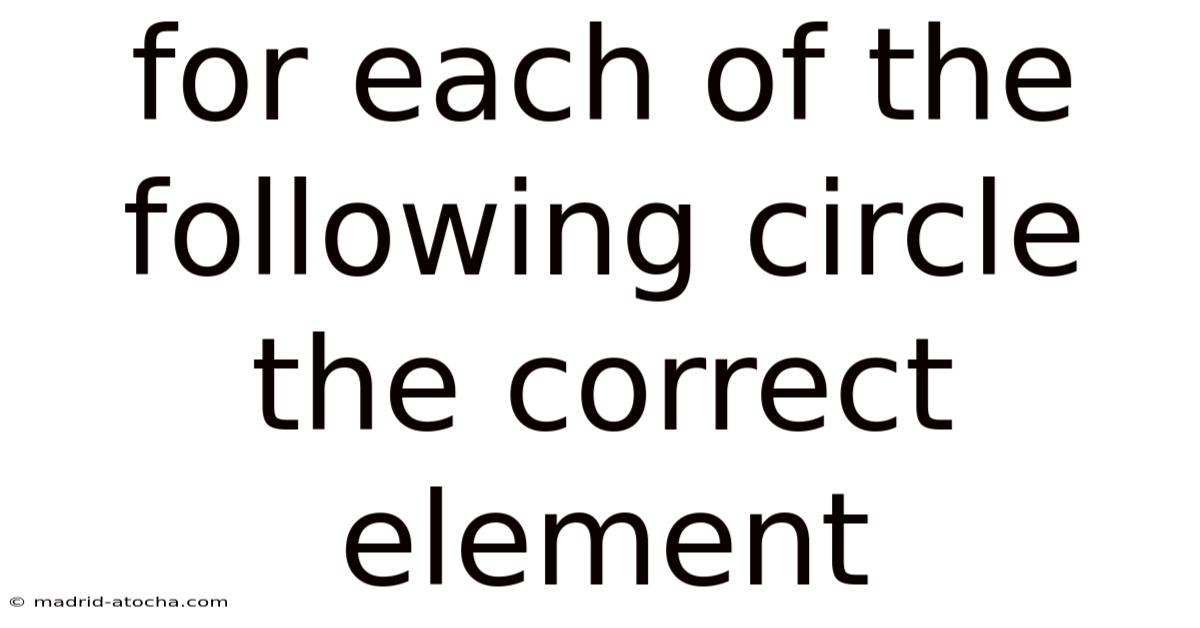 The task of "for each of the following circle the correct element" is a common exercise in educational settings, designed to test a learner’s ability to identify the right component from a set of options. This activity is not just about memorization; it requires critical thinking, contextual understanding, and a solid grasp of the subject matter. Whether in science, mathematics, or even language arts, the ability to circle the correct element is a fundamental skill that builds analytical precision. This article explores the purpose of this exercise, strategies to approach it effectively, and its relevance across disciplines.