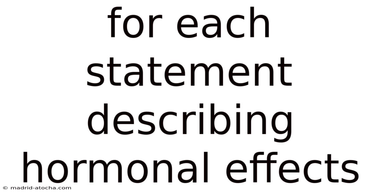 Hormonal effects shape nearly everyfunction in the human body, from growth and metabolism to mood regulation and reproduction. Even so, Understanding how each statement describing hormonal effects operates provides a clear roadmap for grasping the underlying biology and its practical implications. This article walks you through a series of concise statements, unpacks the science behind them, and highlights why these insights matter for health, performance, and everyday wellbeing Less friction, more output..