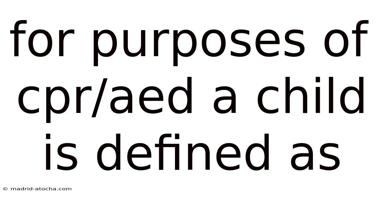 For purposes of CPR/AED a child is defined as anyone who meets the age, weight, or developmental criteria established by local health authorities, emergency‑response agencies, and training organizations. These criteria are not arbitrary; they reflect physiological differences that influence how cardiac arrest presents, how rescue techniques should be applied, and what equipment settings are appropriate. Understanding the precise definition helps rescuers choose the correct compression depth, rate, and AED pad placement, ultimately improving survival odds for the youngest patients.