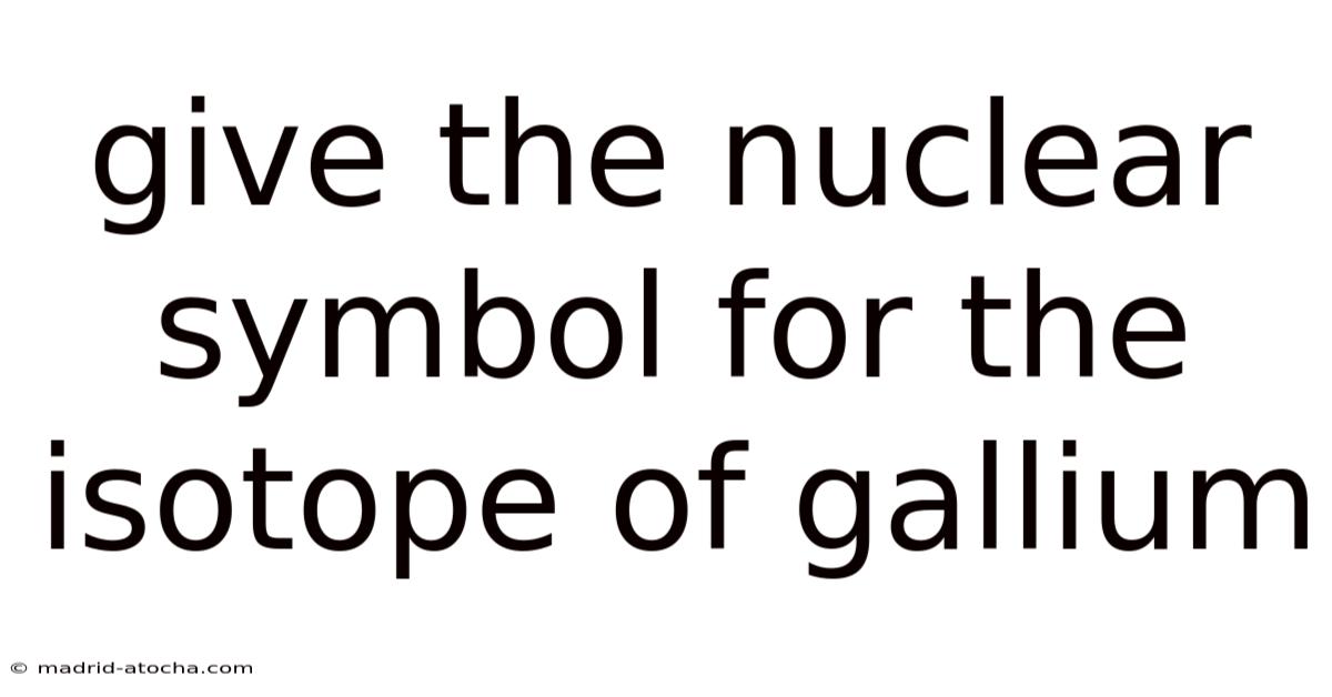 Thenuclear symbol for an isotope provides a concise representation of its atomic structure, combining the element's symbol with its mass number and atomic number. Understanding how to construct this symbol is fundamental for chemists, physicists, and students delving into atomic theory and nuclear chemistry. This guide will walk you through determining the nuclear symbol for the isotopes of gallium, a crucial element found in group 13 of the periodic table.