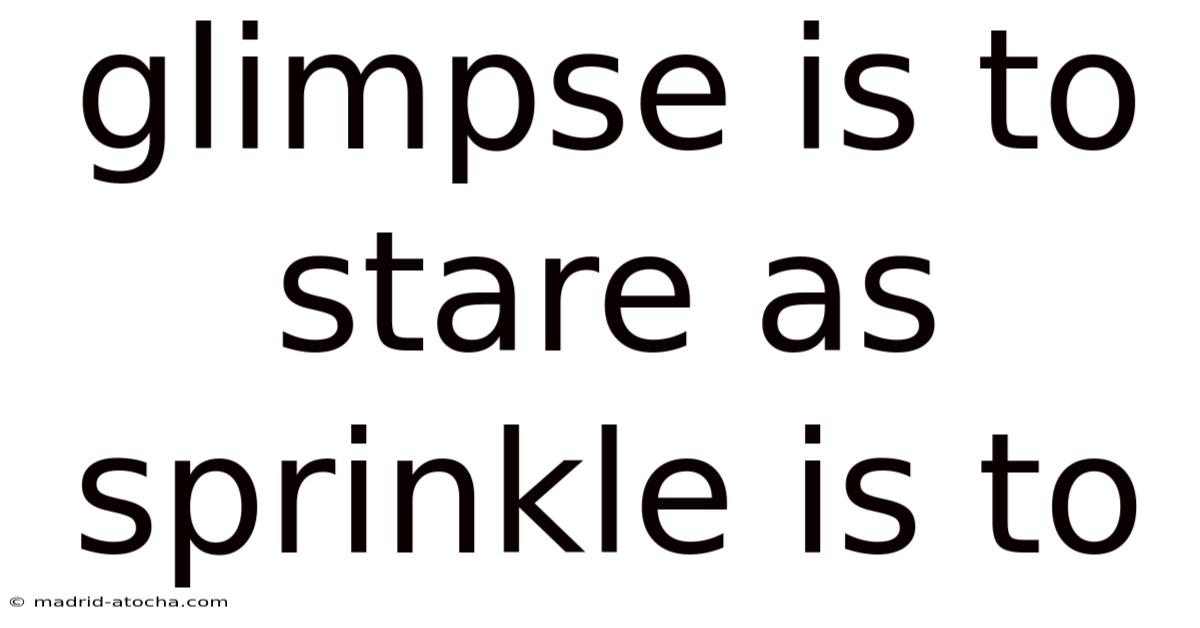 a glimpse is to stare as sprinkle is to pour. this analogy reveals a fundamental relationship between two pairs of words, highlighting how they represent different intensities or durations of the same core action. understanding this connection deepens our grasp of language and the subtle gradations of meaning words can convey. let's dissect each component to illuminate the analogy's structure and significance.