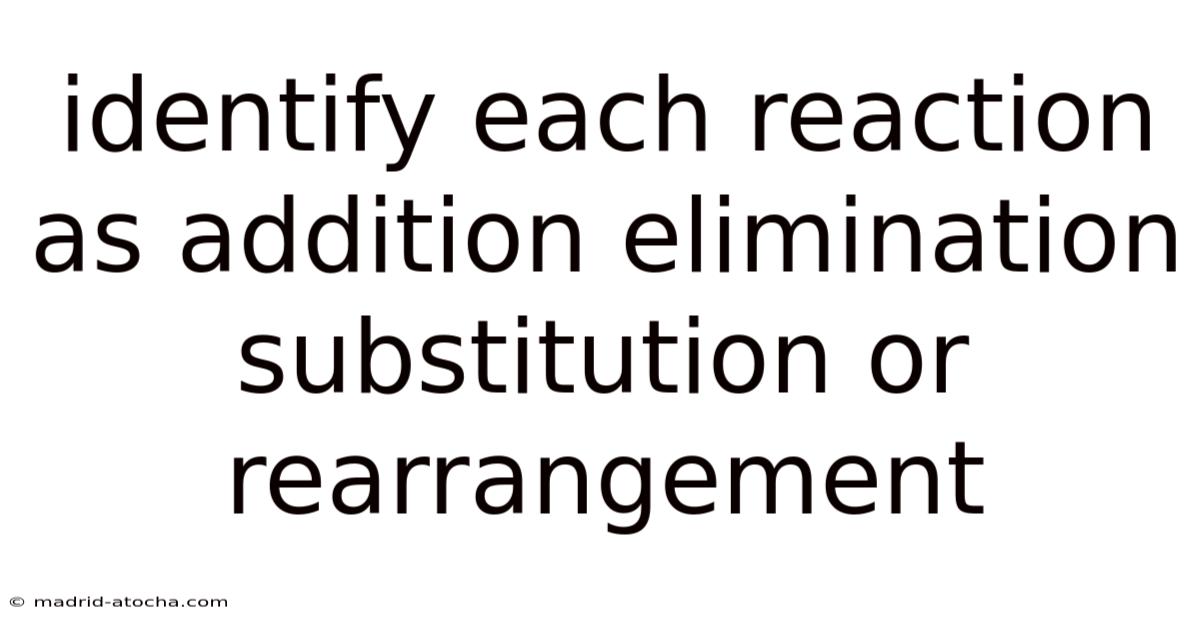 Learning to identify each reaction as addition elimination substitution or rearrangement is a foundational skill in organic chemistry that transforms confusing molecular transformations into predictable, logical patterns. Whether you are preparing for university exams, navigating laboratory synthesis, or simply exploring how atoms interact, mastering these four core reaction types will give you the confidence to analyze chemical equations with precision. This guide breaks down the defining features of each category, provides clear identification strategies, and explains the underlying principles so you can approach any reaction mechanism with clarity and purpose Simple as that..