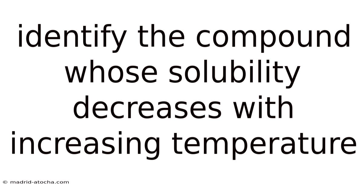 Identifying compounds whose solubility decreases with temperature involves systematic experimentation and thermodynamic analysis. By recognizing and leveraging this unique property, scientists and engineers can develop more efficient separation techniques and prevent unwanted precipitation in industrial systems. These exceptions, though counterintuitive, follow predictable principles rooted in exothermic dissolution and lattice energy dominance. Think about it: understanding their behavior is vital for applications ranging from mineral processing to environmental remediation. The study of inverse temperature solubility not only expands fundamental chemical knowledge but also drives innovation in materials science and chemical engineering.