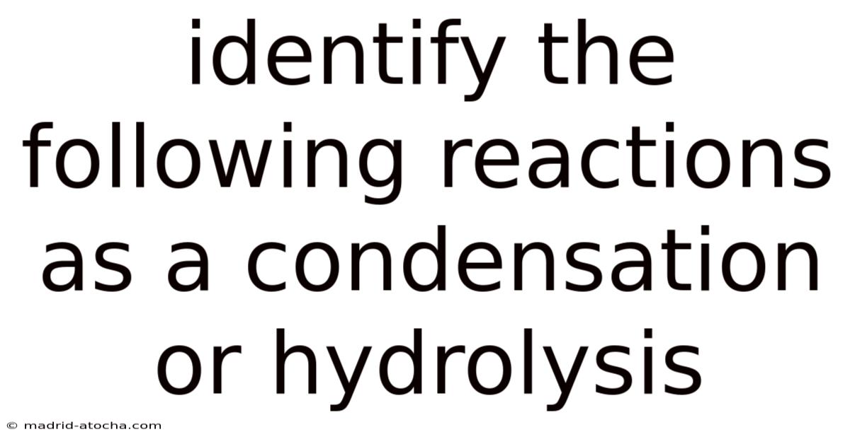 Understanding the difference between condensation and hydrolysis reactions is fundamental to mastering organic and biochemistry. By recognizing the key features—such as the involvement of water, the formation or breaking of bonds, and the size of the resulting molecules—you can confidently identify these reactions in both academic and real-world contexts. Whether you're studying for an exam, conducting research, or simply curious about the molecular processes that sustain life, a solid grasp of these concepts will serve you well Worth keeping that in mind..