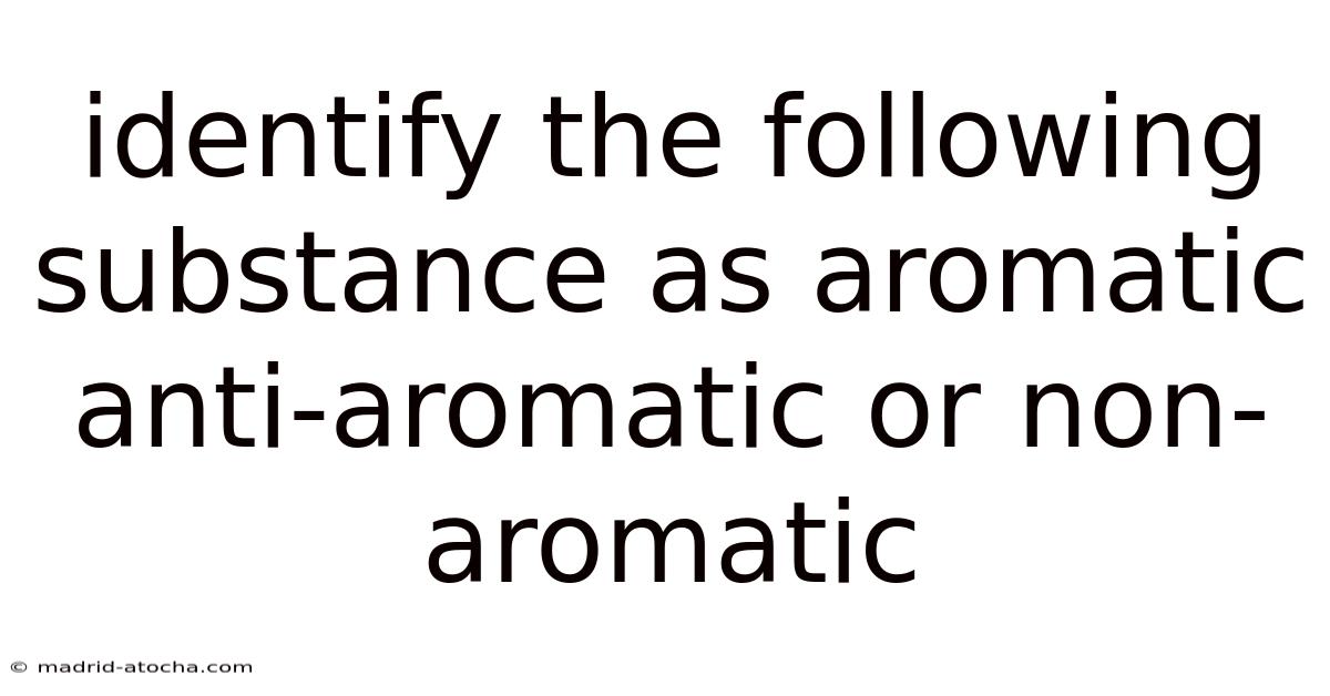 Identify the Following Substance as Aromatic, Anti-Aromatic, or Non-Aromatic