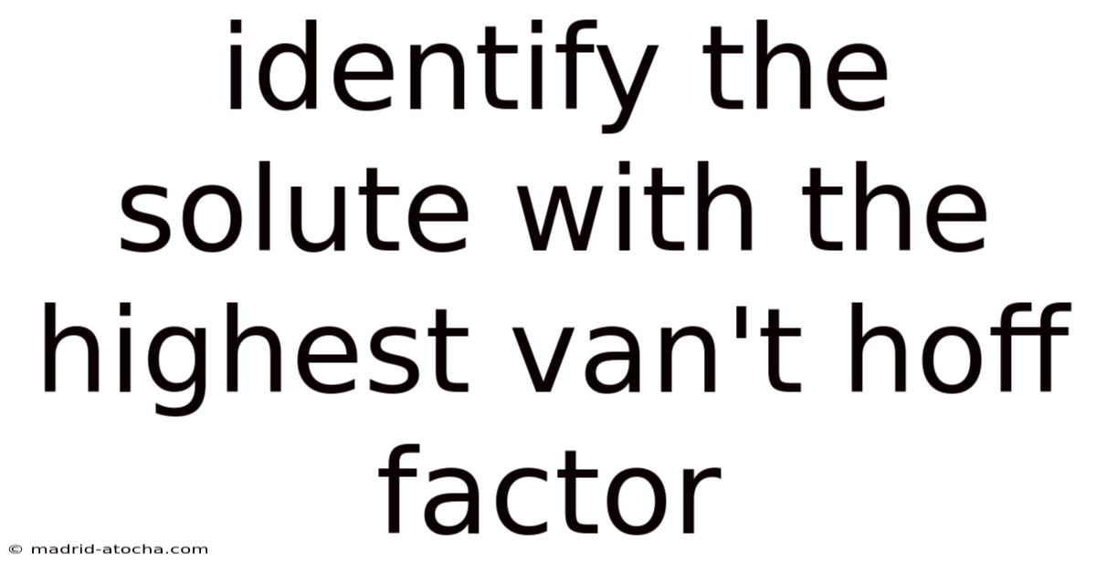 The van’t Hoff factor is a fundamental concept in physical chemistry that quantifies the extent to which a solute dissociates into particles when dissolved in a solvent. Think about it: this factor directly influences colligative properties—such as boiling point elevation, freezing point depression, and osmotic pressure—by determining how many particles a solute contributes to a solution. Practically speaking, identifying the solute with the highest van’t Hoff factor is crucial for predicting these properties accurately, especially in applications ranging from industrial chemistry to environmental science. This article explores how to identify such solutes, the science behind the van’t Hoff factor, and practical steps to apply this knowledge.