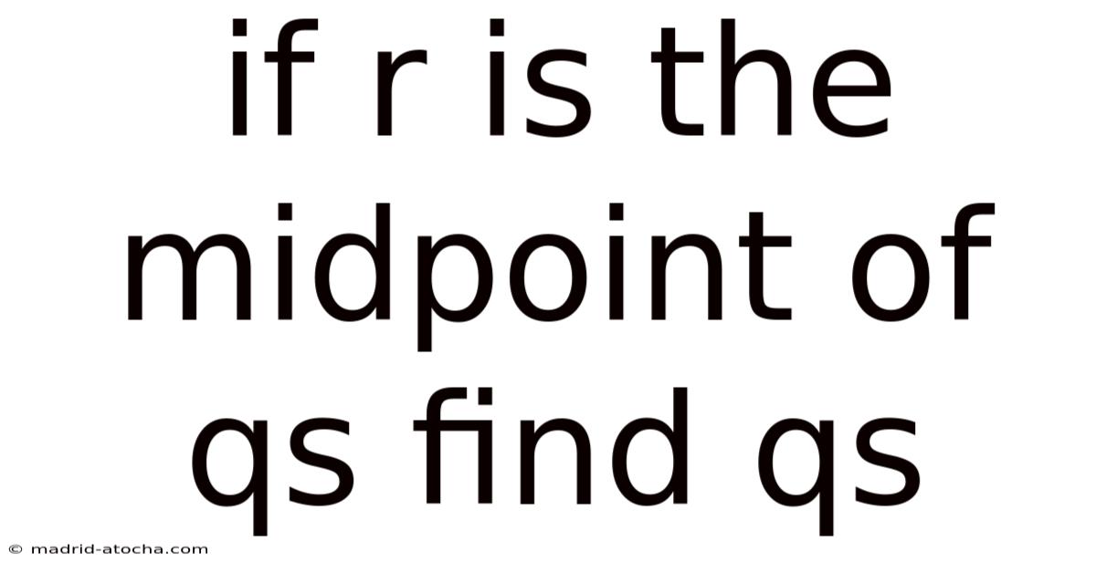 When dealing with geometric problems, the concept of a midpoint is fundamental. If R is the midpoint of QS, it means that R lies exactly halfway between points Q and S on the line segment QS. A midpoint is a point that divides a line segment into two equal parts. This relationship is not just a theoretical idea but a practical tool used in various fields, from geometry to real-world measurements. So naturally, understanding how to find QS when R is the midpoint is a key skill that can simplify complex problems. The process involves applying basic principles of geometry and algebra, making it accessible to learners at all levels. By mastering this concept, you can solve problems related to distances, coordinates, and spatial relationships with confidence Surprisingly effective..