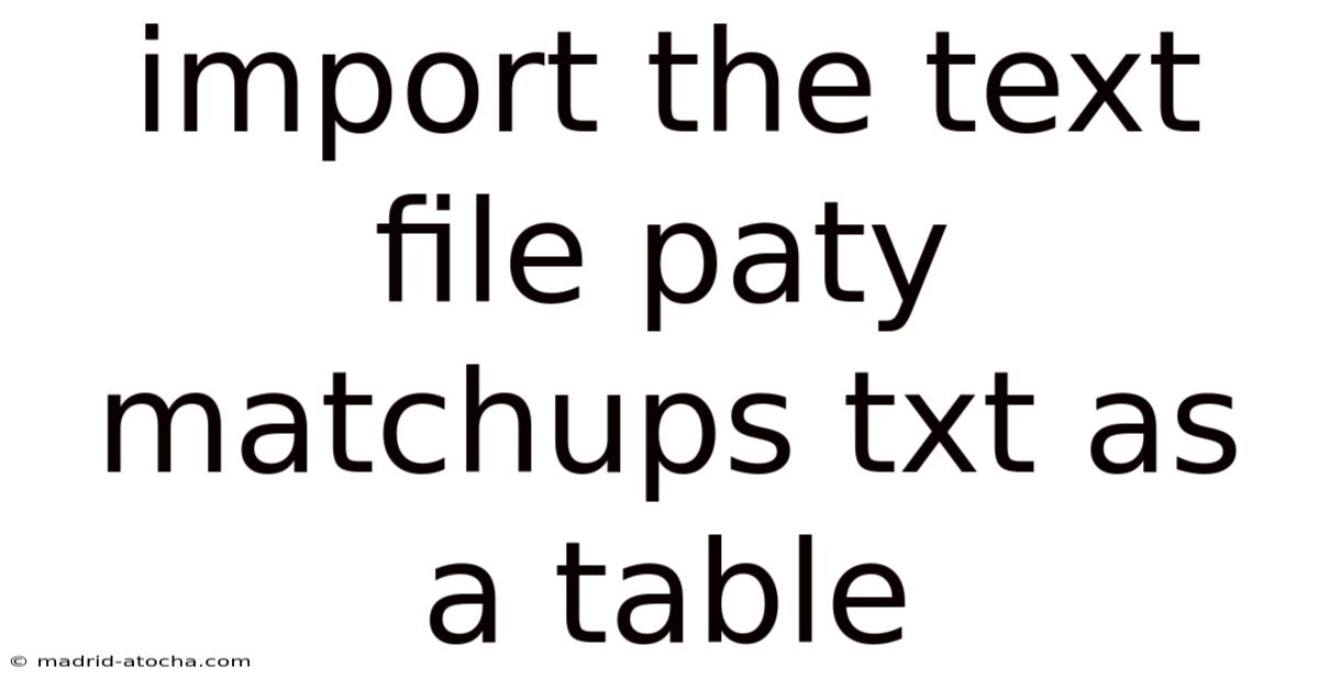 Conclusion import the text file paty matchups txt as a table is a straightforward task once you understand the underlying structure of plain‑text data and the import mechanisms of your chosen tool. By preparing the file, selecting the appropriate delimiter, and following the step‑by‑step instructions for Excel, Google Sheets, or Python, you can transform raw matchup listings into a fully functional table ready for analysis. Remember to watch for common pitfalls, verify data types, and leverage built‑in cleaning features to ensure a clean, accurate dataset. With these practices in place, you’ll be able to focus on the insights the matchup data reveals rather than wrestling with formatting issues.