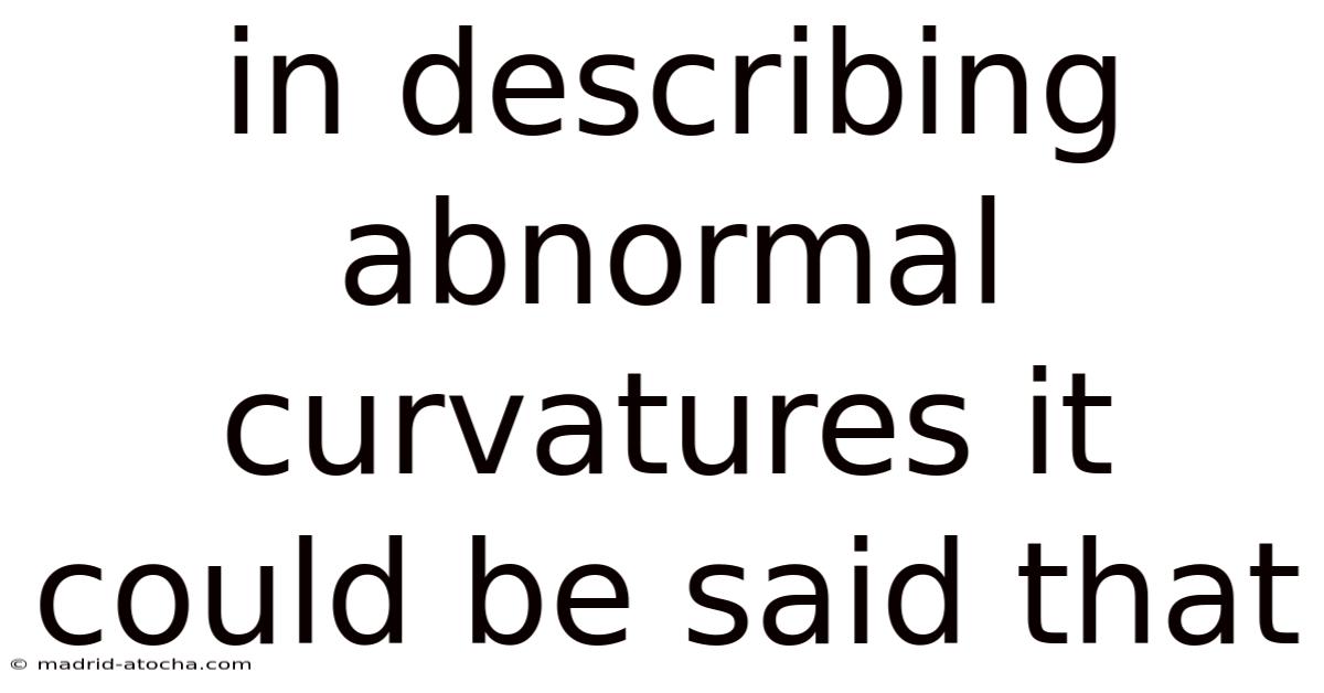 In describing abnormal curvatures it could be said that they represent deviations from the normal anatomical structure of a body part, often leading to functional or aesthetic complications. These curvatures are not merely random bends but are typically the result of underlying conditions, genetic factors, or mechanical stresses. Understanding abnormal curvatures requires a nuanced approach, as they can affect various systems in the body, from the skeletal framework to soft tissues. The term itself encompasses a range of conditions, each with distinct characteristics, causes, and implications. By examining these curvatures, medical professionals can diagnose and address issues that might otherwise go unnoticed or progress without intervention.