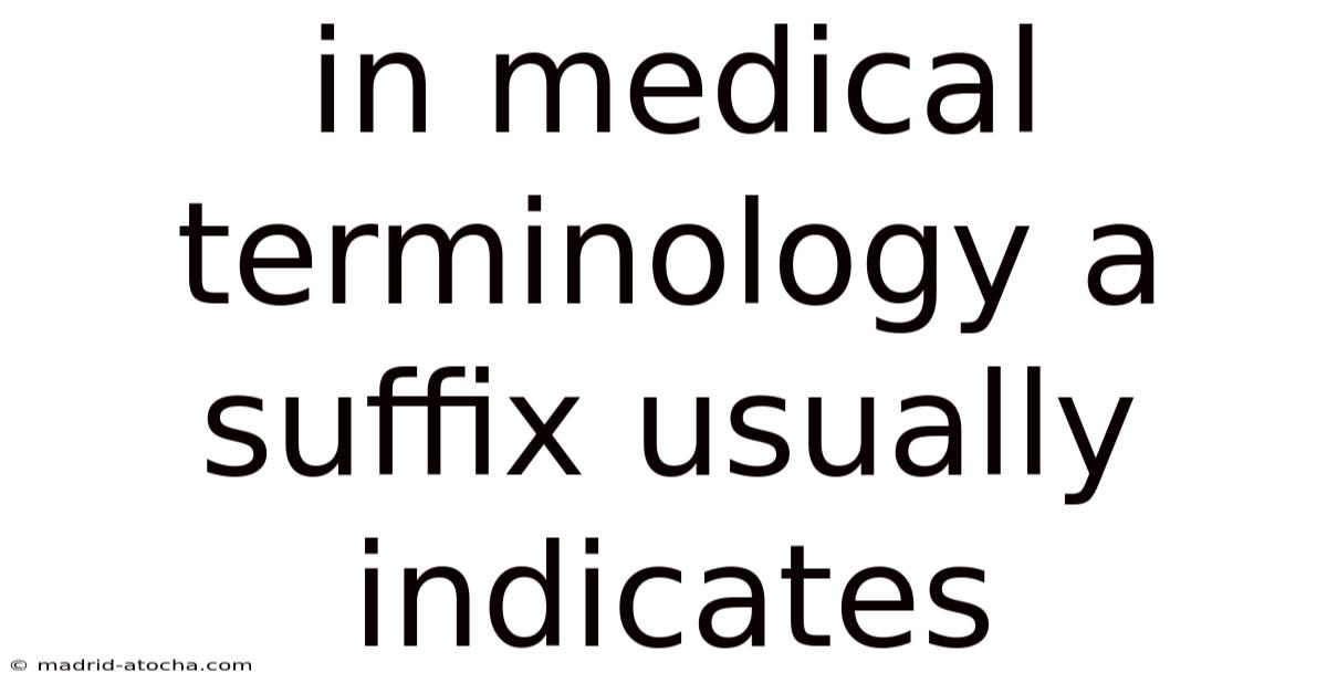 Medical terminology is a specialized language used in the healthcare industry to communicate clearly and precisely about various aspects of health and medicine. It is composed of roots, prefixes, and suffixes, each carrying a specific meaning. Think about it: while roots and prefixes often indicate the main part of a medical term, suffixes typically provide additional information. Understanding the suffixes is essential for anyone involved in healthcare, as it allows for a deeper comprehension of medical terms and their implications Worth keeping that in mind..