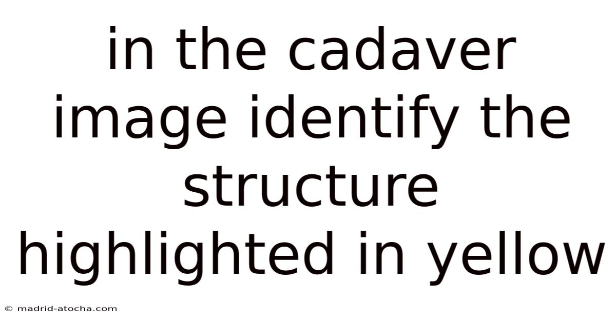 The human body, a marvel of biological complexity, remains one of the most intriguing subjects of study across disciplines. From the complex dance of neurons to the delicate balance of hormones regulating metabolism, understanding cadavers provides unique insights into physiological processes that are often obscured by modern technology. On the flip side, even within the realm of forensic science and medical education, interpreting cadaver images demands precision and expertise. Among the most critical elements in such analyses is the presence of a distinct structure highlighted in yellow within a visual representation of a human body. Here's the thing — this yellow mark serves as a focal point for identification, offering clues about anatomical significance, pathological conditions, or even historical context. And recognizing this element requires a combination of visual acuity, contextual knowledge, and familiarity with medical terminology. For professionals in fields such as forensic pathology, medical illustration, or historical documentation, discerning the implications of this highlighted area is not merely a technical task but a foundational skill that underpins accurate interpretation. Whether examining a skeletal framework or a soft tissue detail, the yellow indicator acts as a compass guiding the observer toward the core of the subject matter. Its presence often signals a specific type of anomaly or a critical feature that demands scrutiny, making its identification a important moment in the analysis process. In this context, the task of distinguishing the yellow highlight from surrounding elements becomes critical, as even minor deviations can alter the narrative of the subject being studied. In practice, this article walks through the multifaceted role of the yellow-marked structure, exploring its potential meanings, methodologies for recognition, and the broader implications of its study. By unpacking the significance of this visual cue, readers gain a deeper appreciation for the interplay between observation, knowledge, and application in understanding the human form And that's really what it comes down to..
