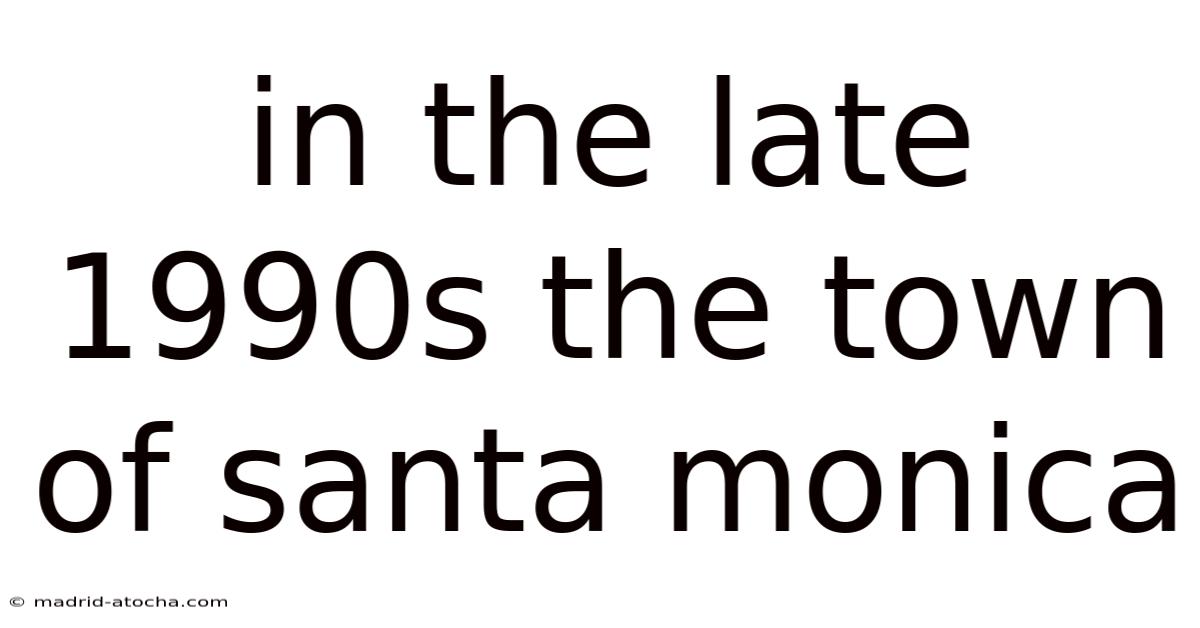 The late 1990s marked a transformative period for Santa Monica, a coastal gem in California that balanced its historic charm with the rapid changes of the modern era. Because of that, nestled between the Pacific Ocean and the bustling city of Los Angeles, Santa Monica became a microcosm of the broader shifts shaping American society during this time. From the rise of the digital age to the evolution of its cultural identity, the town navigated a dynamic landscape that would leave a lasting imprint on its community It's one of those things that adds up..
