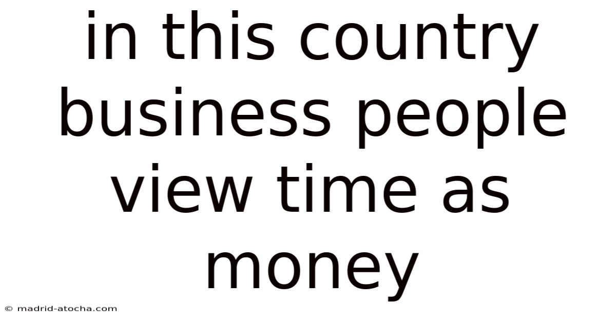 The Business Perspective on Time as Money: A Cultural and Economic Lens