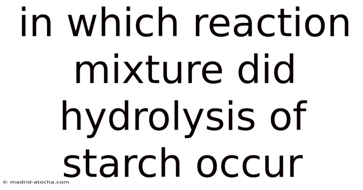 In which reaction mixture did hydrolysis of starch occur? This is a fundamental question in biochemistry and food science, often explored in laboratory experiments and educational settings. In practice, starch hydrolysis is a chemical process where starch molecules are broken down into simpler sugars, primarily maltose and glucose, through the action of enzymes or acids. Understanding which reaction mixture facilitates this process is crucial for applications ranging from food production to industrial biotechnology Less friction, more output..