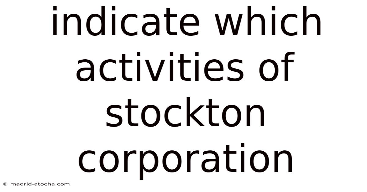 Indicating which activities Stockton Corporation engages in requires a systematic approach that examines financial statements, operational details, strategic initiatives, and corporate disclosures. By analyzing these various aspects, stakeholders can develop a comprehensive understanding of the corporation's current operations, strategic direction, and overall business model. That's why this analysis not only provides insight into past performance but also offers valuable perspectives on future prospects and potential risks. Whether you're an investor, business partner, or simply interested in corporate activities, understanding how to properly identify and evaluate these activities is an essential skill in today's complex business environment.