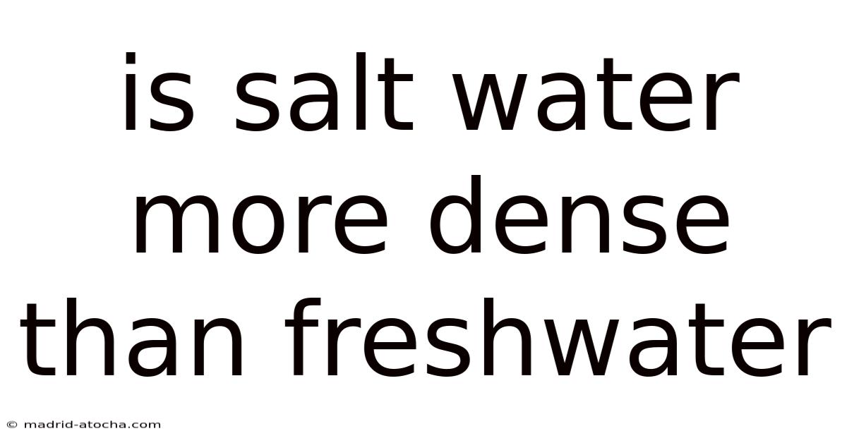The key to answering is salt water more dense than freshwater lies in understanding how salt interacts with water molecules. These ions spread throughout the water, increasing the total mass of the solution without significantly altering its volume. When salt dissolves in water, it breaks down into sodium (Na⁺) and chloride (Cl⁻) ions. Since density is mass per unit volume, adding salt increases the mass while keeping the volume relatively constant, thereby raising the density Small thing, real impact..