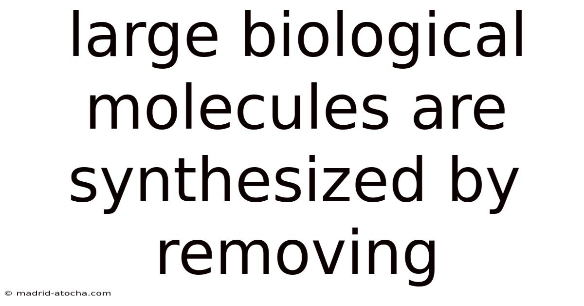 Large biological molecules are synthesized by removing water molecules in a process known as dehydration synthesis or condensation reaction. In real terms, this fundamental biochemical mechanism allows cells to build complex macromolecules from smaller subunits, forming the basis of life's molecular architecture. From proteins that catalyze reactions to nucleic acids that store genetic information, the magnificent complexity of living organisms relies on this elegant chemical process. Understanding how large biological molecules are synthesized by removing water provides insight into the very essence of cellular function and the continuity of life itself The details matter here..