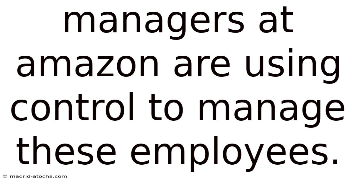 Managers At Amazon Are Using Control To Manage These Employees.