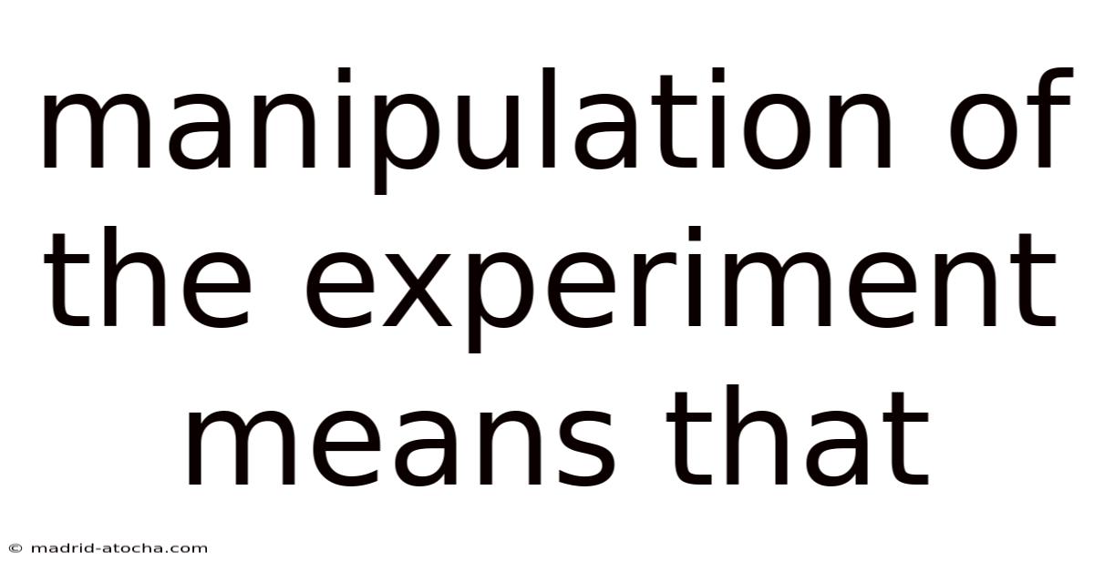 Manipulation ofthe experiment means that researchers deliberately alter conditions, variables, or procedures to test a specific hypothesis while controlling for extraneous influences. This core practice underpins experimental design across disciplines, from psychology to chemistry, and understanding its nuances is essential for anyone seeking reliable, reproducible results. In this article we explore the concept in depth, outline practical steps for proper manipulation, discuss common pitfalls, and answer frequently asked questions, all while maintaining a clear, SEO‑friendly structure Not complicated — just consistent. That's the whole idea..