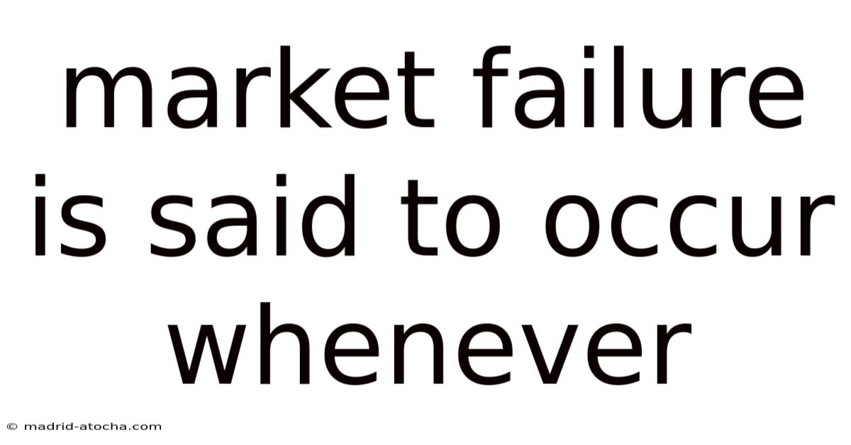 Market Failure is Said to Occur Whenever the Free Market Fails to Achieve Efficient Outcomes