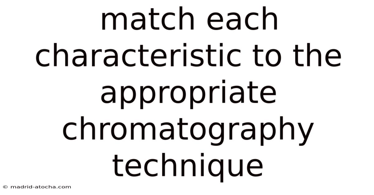 Chromatography is the backbone of modern analytical chemistry, allowing scientists to separate, identify, and quantify the components of complex mixtures. Yet, the sheer variety of chromatographic techniques can be overwhelming for students and professionals alike. This article matches the most common chromatographic characteristics to the appropriate technique, offering a clear roadmap for selecting the right tool in the laboratory. Here's the thing — each method possesses distinct characteristics—such as stationary‑phase composition, mobile‑phase polarity, detection limits, and sample compatibility—that make it ideal for specific applications. By the end of the reading, you will be able to quickly identify which method best fits a given analytical challenge, whether you are working with volatile gases, large biomolecules, or trace environmental pollutants.