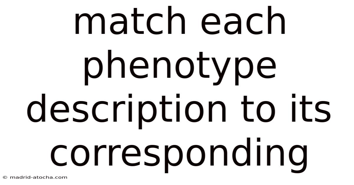 Phenotypes are the observable traits or characteristics of an organism, shaped by the interplay of genetics and environment. On top of that, matching phenotype descriptions to their corresponding genetic or environmental factors is a cornerstone of genetics, medicine, and evolutionary biology. Consider this: from eye color and height to disease susceptibility, phenotypes tell a story written in DNA. This article explores the process, science, and practical applications of linking phenotypes to their underlying causes, empowering readers to decode the hidden language of traits Which is the point..
