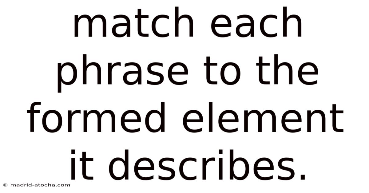 Introduction Matching phrases to formed elements is the cornerstone of structured understanding. Whether you're parsing a complex sentence, debugging code, or analyzing a scientific report, identifying which specific phrase corresponds to which defined element provides clarity and enables deeper analysis. This article explores the methodology behind this essential task, outlining clear steps, explaining the underlying principles, and addressing common questions. Understanding this process empowers you to navigate information more efficiently and communicate with greater precision.