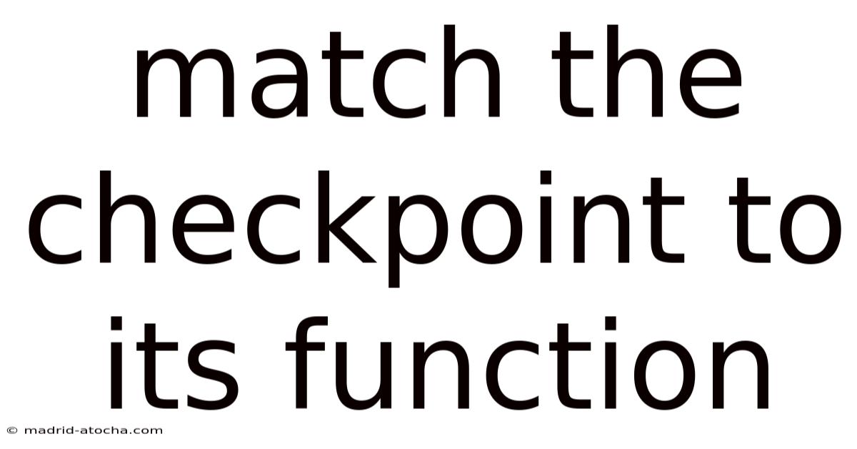 The concept of "matching the checkpoint to its function" is a critical aspect of understanding how biological systems maintain order and prevent errors. Plus, these checkpoints act as quality control points, halting or accelerating processes based on specific conditions. Day to day, mastering how to match each checkpoint to its function is not only essential for academic success but also for grasping the complex balance that sustains life at the molecular level. In the context of cellular biology, checkpoints are control mechanisms that ensure the proper progression of key processes like the cell cycle, DNA replication, and repair. This article gets into the mechanisms, types, and significance of checkpoints, providing a clear framework for identifying their roles And it works..