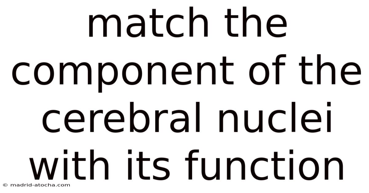 The cerebral nuclei are a group of interconnected brain structures located deep within the central nervous system. Here's the thing — these nuclei play a critical role in regulating a wide range of functions, from motor control to emotional processing. Understanding how each component of the cerebral nuclei contributes to specific physiological or cognitive processes is essential for grasping the complexity of the human brain. This article aims to match the components of the cerebral nuclei with their respective functions, providing a clear and comprehensive overview of their roles. By exploring the anatomy and purpose of these structures, readers can gain a deeper appreciation of how the brain orchestrates its activities.