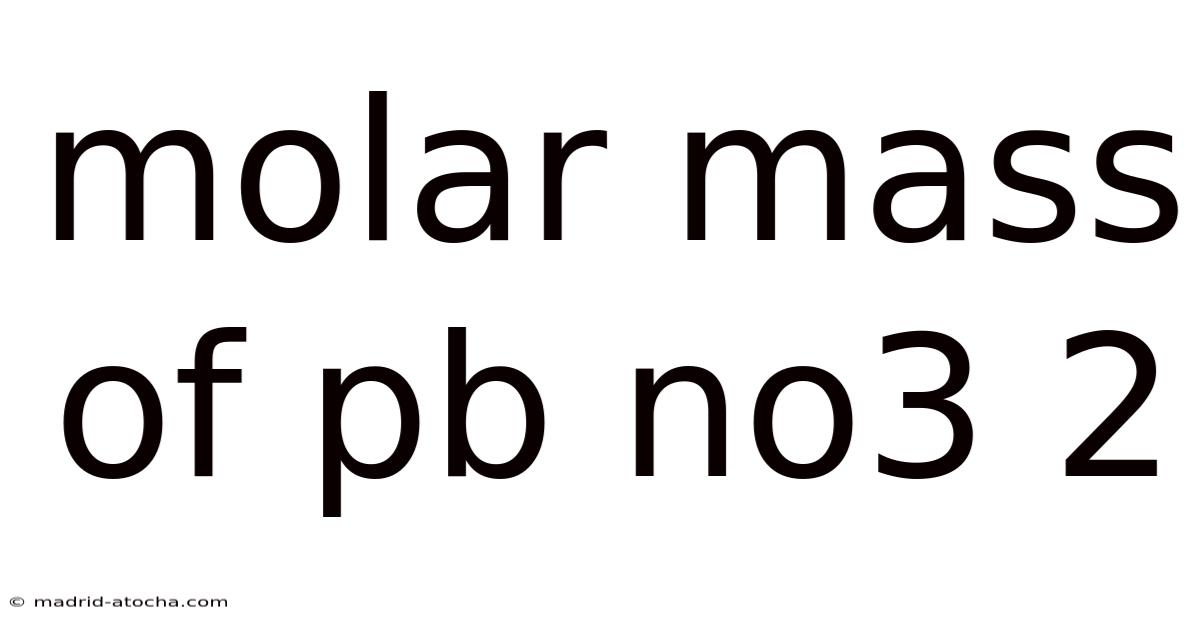 Q: Why is the molar mass of Pb(NO3)2 important in chemistry? A: The molar mass is crucial for stoichiometric calculations, solution preparation, and analytical procedures. It allows chemists to relate the mass of a substance to the number of moles, which is essential for predicting reaction outcomes and determining concentrations It's one of those things that adds up..