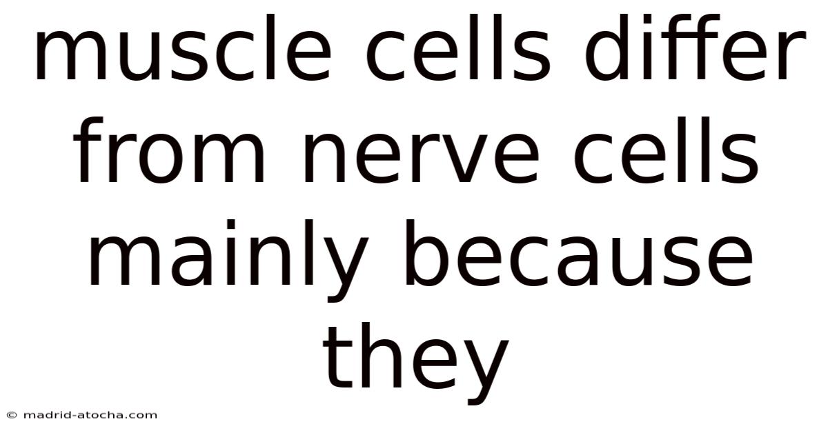The human body relies on two primary categories of specialized cells: muscle cells (myocytes) and neurons (nerve cells). While both are eukaryotic and share basic cellular machinery, their adaptations diverge dramatically. In real terms, the phrase muscle cells differ from nerve cells mainly because they highlights that the key contrast lies in purpose‑driven architecture. This article explores the structural, functional, and metabolic disparities that define these cell types, offering a clear, SEO‑friendly guide for students, educators, and curious readers alike The details matter here. No workaround needed..