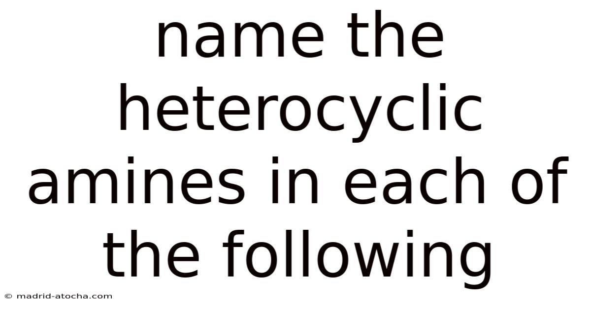 Heterocyclic amines are a class of organic compounds characterized by the presence of nitrogen atoms within a ring structure. Think about it: these compounds play critical roles in biochemistry, pharmaceuticals, and materials science. Their unique properties stem from the combination of aromaticity and nitrogen’s ability to form multiple bonds, making them essential in the synthesis of drugs, nucleotides, and other biologically active molecules. Understanding how to name these compounds is vital for chemists, biologists, and researchers working in related fields It's one of those things that adds up. Worth knowing..