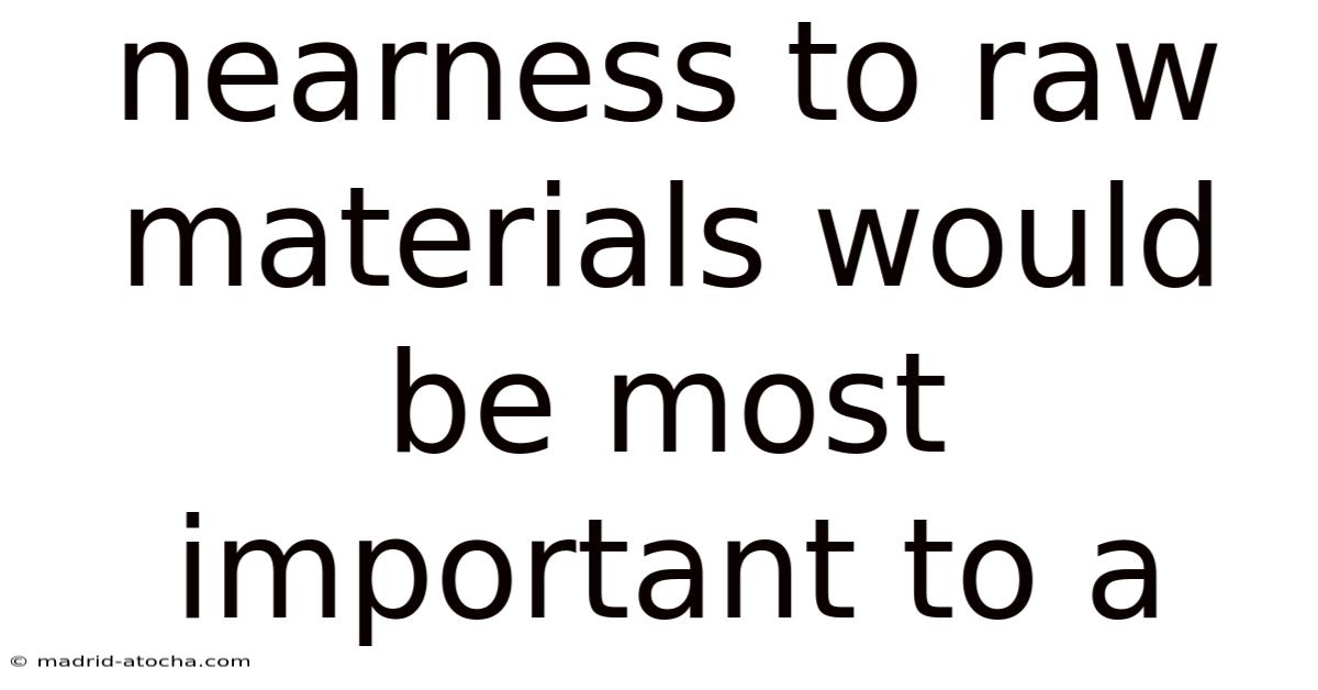 So, to summarize, the proximity to raw materials is a critical factor that can influence a business’s success. That said, by reducing transportation costs, enhancing supply chain resilience, improving quality, and supporting sustainability, companies that prioritize local sourcing can achieve significant advantages. As the global economy continues to evolve, the importance of being near raw material sources will only grow. Worth adding: businesses that embrace this concept will not only thrive in the present but also position themselves for future growth. Understanding these dynamics is essential for anyone looking to build a reliable and responsive operation in an increasingly interconnected world Took long enough..