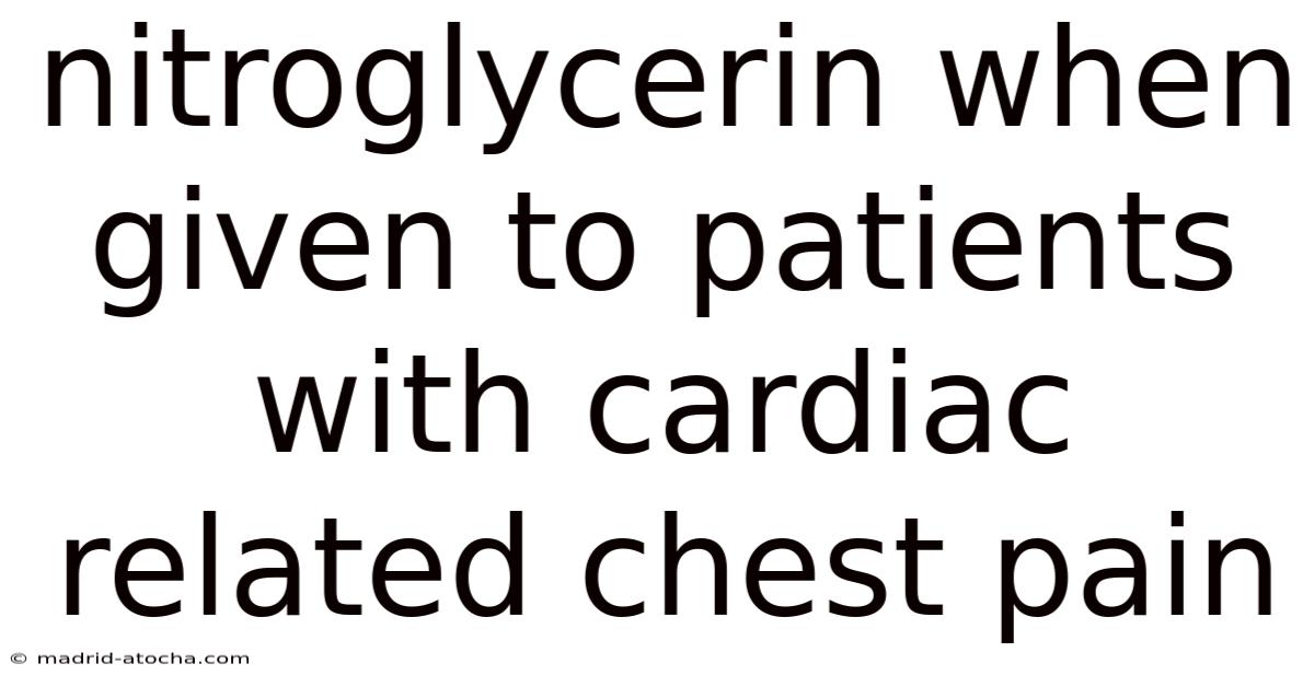 Nitroglycerin When Given To Patients With Cardiac Related Chest Pain