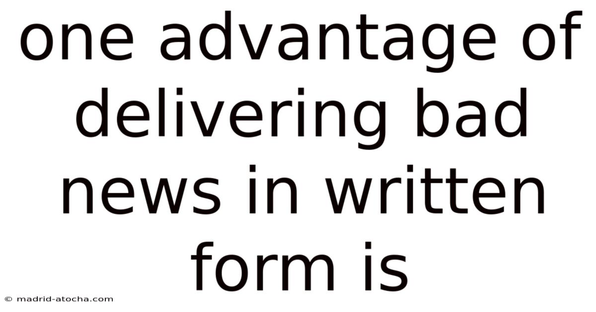 In the realm of communication, delivering bad news is a delicate task that requires tact, clarity, and sensitivity. While face-to-face conversations or phone calls might seem more personal, written communication offers a unique advantage when it comes to conveying difficult messages. Still, one significant benefit of delivering bad news in written form is the ability to provide ample time for the recipient to process the information, reducing the immediate emotional impact and allowing for a more measured response. This article explores the reasons behind this advantage and how written communication can be effectively utilized to deliver bad news with empathy and professionalism And that's really what it comes down to..