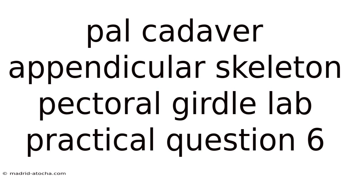 Mastering pal cadaver appendicular skeleton pectoral girdle lab practical question 6 requires more than rote memorization; it demands attentive observation, systematic verification, and an appreciation for the dynamic interplay between form and function. By refining palpation skills, understanding osseous relationships, and anticipating common pitfalls, students can approach practical examinations with confidence and precision. This knowledge not only supports academic success but also builds a foundation for clinical reasoning, surgical planning, and therapeutic interventions that rely on accurate anatomical interpretation.