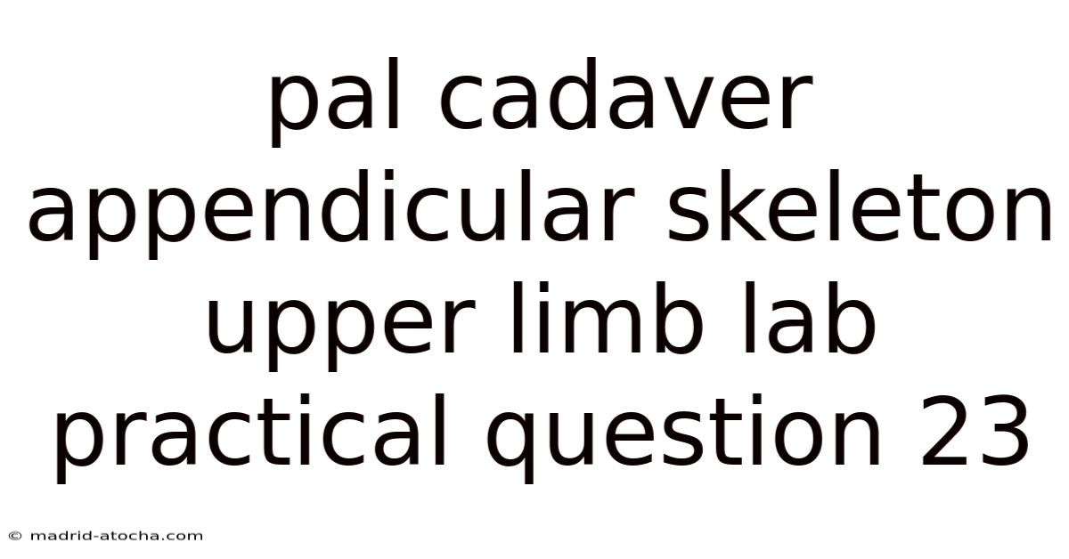The PAL cadaver appendicular skeleton upper limb lab practical is a staple in anatomy courses that aim to bridge theoretical knowledge with hands‑on dissection skills. Even so, question 23, a common item in many curricula, challenges students to identify, describe, and clinically relate specific structures of the upper limb. Mastering this question not only secures a good lab grade but also builds a solid foundation for future clinical practice, especially in orthopaedics, physiotherapy, and surgery Still holds up..