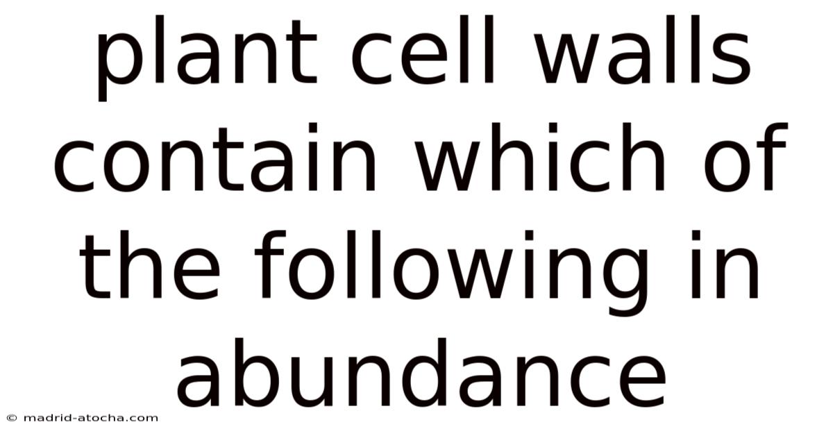 Plant cell walls are essential structures that provide support, protection, and shape to plant cells. They are primarily composed of complex carbohydrates and other organic molecules, with certain components present in particularly high abundance. Understanding the composition of plant cell walls is crucial for fields such as botany, agriculture, and biotechnology Small thing, real impact..